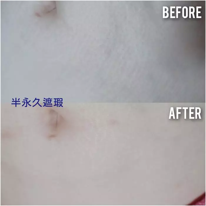 以「德國」進口天然色乳,調製成接近於原生膚色,相較於遮瑕膏,覆蓋度較輕、透明度較高,在修飾肌膚同時,不會因為過度遮掩皮膚的紋理,導致看起來僵硬,並且讓肌膚看起來更自然,是深受紋路、疤痕所困擾的朋友們,100%指定必做課程。