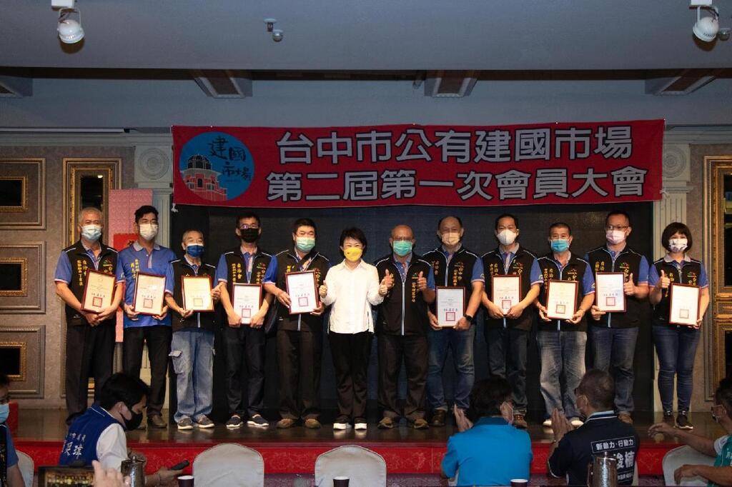 建國市場自治會自105年9月20日搬遷至建成路新址,今(29)日舉辦遷至新址的第2屆會員大會,市長盧秀燕親自出席恭喜並頒發自治會幹部當選證書,也感謝會長兼市政顧問的蔡鈴欽積極爭取預算,改善軟硬體設施,帶領各攤商齊心努力,提供民眾優質友善的購物環境,為建國市場創造更多商機。