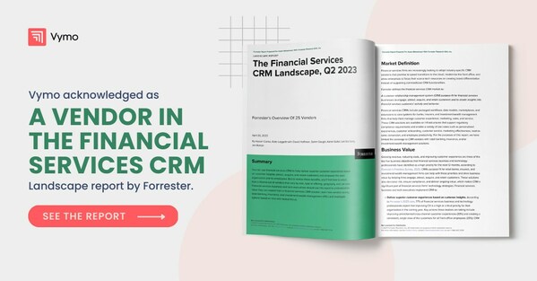 新加坡2023年6月2日 /美通社/ — Vymo 被全球其中一家最具影響力的研究及諮詢公司 Forrester 在《2023 年第二季金融服務 CRM 格局》(The Financial Services CRM Landscape, Q2 2023) 報告中評選為傑出供應商。