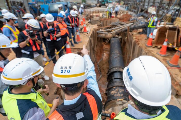 王副市長視察桃園區介壽路自來水管線臨遷工程 工程進度超前、桃園區及八德區恢復供水