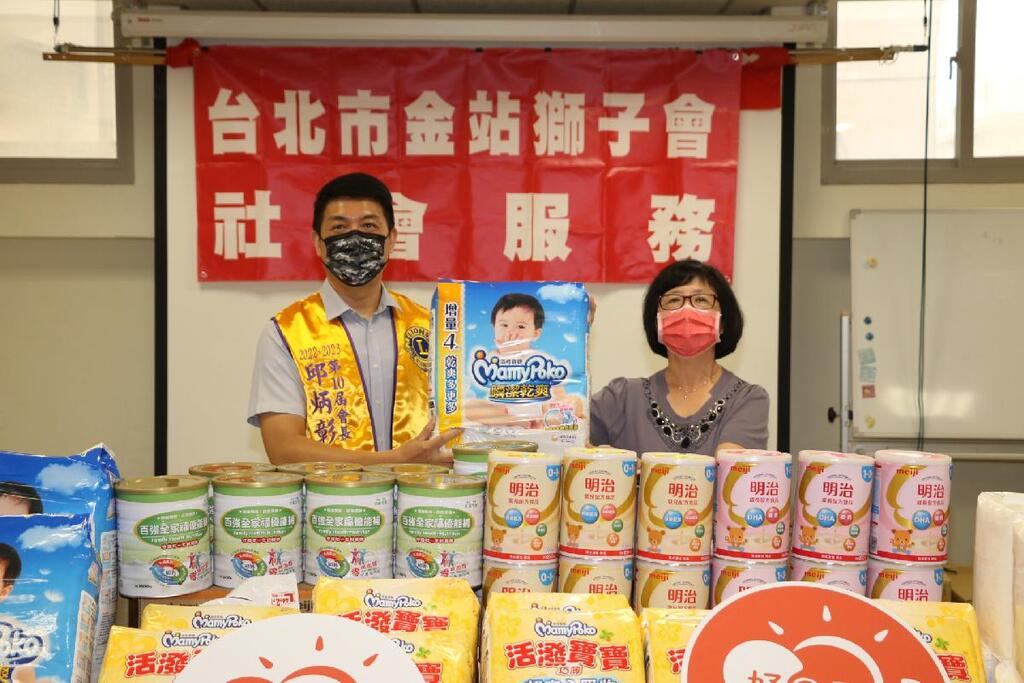 新冠疫情期間,許多弱勢家庭的生活受到衝擊,長期熱心公益的台北市金站獅子會,為響應新北市好日子愛心大平台,1日上午特地由會長邱炳彰率會員渡過淡水河,專程到新莊及泰五林社福中心捐贈超過11萬元的民生物資,包含嬰幼兒奶粉、尿片及成人紙尿褲、營養品等,希望用愛包住老少寶貝的幸福。