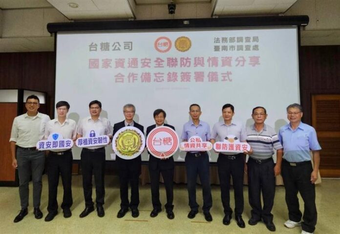 為響應「資安即國安」政策,台糖公司於今(14)日正式與法務部調查局臺南市調查處共同簽署「國家資通安全聯防與情資分享合作備忘錄」,由台糖董事長楊明州及臺南市調查處處長黃建華共同主持,未來將透過情資共享機制,增強資安聯防之專業縱深及防護能量,共同努力守護資訊安全,防範駭客入侵。
