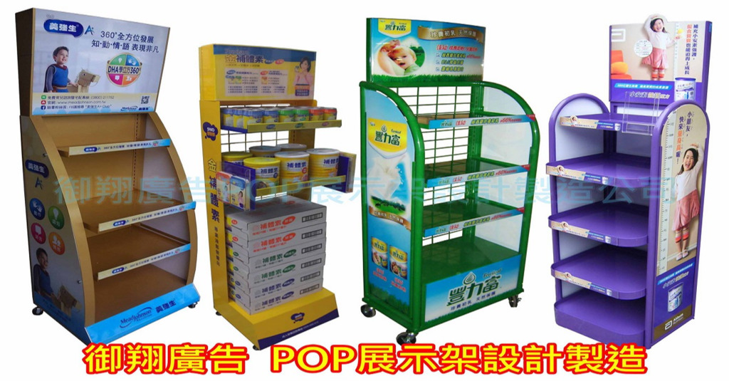 客製化商品展示陳列架、POP展示陳列架訂製、壓克力發泡板立牌展示陳列架、奶粉營養品展示陳列架、化妝品櫃展示陳列架、金屬烤漆鐵線鐵管展示落地架、層板掛鈎價標牌訂製、LED燈箱看板展示陳列架、雜誌書籍展示陳列架、車用機油輪胎展示陳列架、桌上吊掛型展示陳列架、便利商店量販店各類型展示陳列架、賣場食品生鮮貨架側邊展示陳列架、DIY組合式旋轉式展示陳列架。