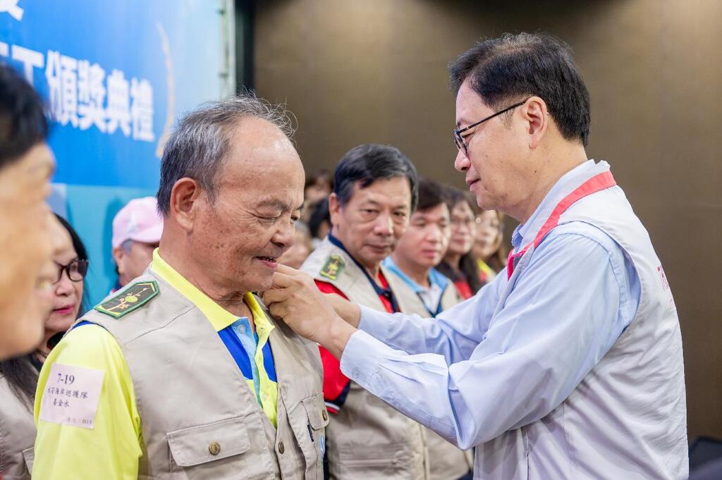 今日張市長也為新進的環保潛水隊授旗,歡迎新進同仁加入海廢垃圾清除工作,並頒發團體獎及個人獎等獎項。張市長特別感謝淨海志工的績優表現,為守護海洋建立最佳典範。
