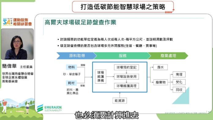 體育署進一步表示,為配合淨零排放、環境永續的世界潮流,希望藉由「打造低碳節能智慧球場之策略」課程,讓與會人員了解球場節能減碳措施及智慧化管理之效益,並透過「高爾夫球場環境管理應用實例」課程,強化球場如何制定環境策略、水質保護計畫,以及防治紅火蟻技巧。同時借鏡黃美蘭總經理對管理揚昇高爾夫球場的實務經驗,協助球場業者透過各種行銷工具及客戶關係管理,打造高爾夫球場優質產業環境,達成球場永續經營目標。