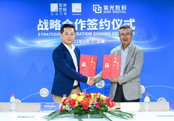 香港2023年6月20日 /美通社/ — 為把握中國內地市場蘊藏的龐大商機,香港寬頻集團(香港交易所股份代號:1310)旗下港寬科技(上海)有限公司(「HKBN JOS」),與中國內地高科技行業的領軍企業紫光集團旗下紫光數碼(蘇州)集團有限公司(簡稱「紫光數碼」)宣佈在中國內地建立戰略合作夥伴關係,為不同行業機構及企業提供更臻完善的數碼轉型方案。HKBN JOS將透過紫光數碼強大的供應鏈物流服務,以及超過30個營運城市、佔地超過50萬平方米的全國倉儲系統,為企業提供更高效率和及時的專業IT營運維護服務,加速企業數碼轉型,全方位為客戶創造價值。