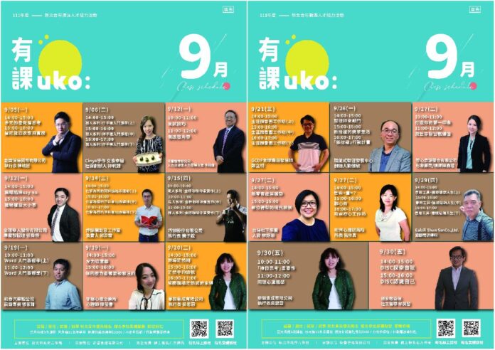 從9月5日開始到9月20日,「有課UKO」推出「職人系列-烘焙與咖啡課程」、「曼陀羅思考與應用」、「職場陷阱與權益」、「圖像視覺輸出表達」、「職場茫然期」等免費課程,協助青年在待業期間從心理壓力的調適、觀察與注意職場陷阱、協助圖像與結構化的表達運用、數位工具的實務應用等,讓青年循序漸進地建立職場軟硬實力。