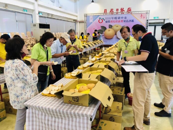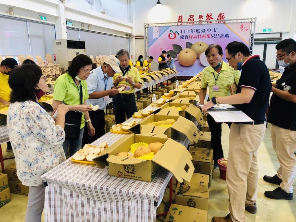 台中市后里區農會為推廣台中市優質農特產品,並提升寶島甘露梨果品品質、讓消費者安心選購,今(2)日在月眉觀光糖廠餐廳舉辦「111年度台中市寶島甘露梨果品評鑑活動」,共60組農民報名參賽,經評審仔細品評後,最終由農友黃志忠拔得頭籌,榮獲今年度「寶島甘露梨王」!