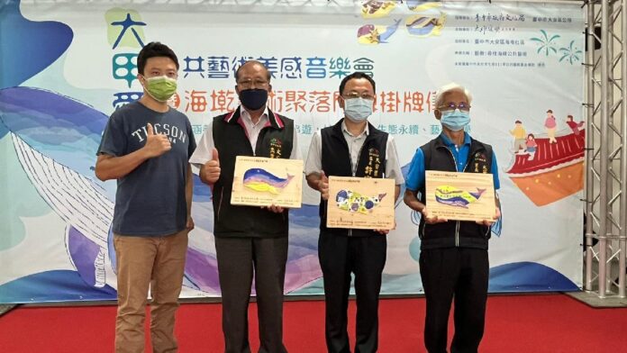 昨日舉行的藝術聚落門牌掛牌儀式暨音樂會,由藝術家林龍杰將彩繪鯨魚造型門牌致贈給海墘里,未來將掛上活動中心大門,與〈鯨生華〉公共藝術作品互相輝映。大甲弦樂四重奏與男中音則在現場演唱「青春嶺」、「月亮代表我的心」等動人曲目,社區居民徜徉在悠揚樂音中。