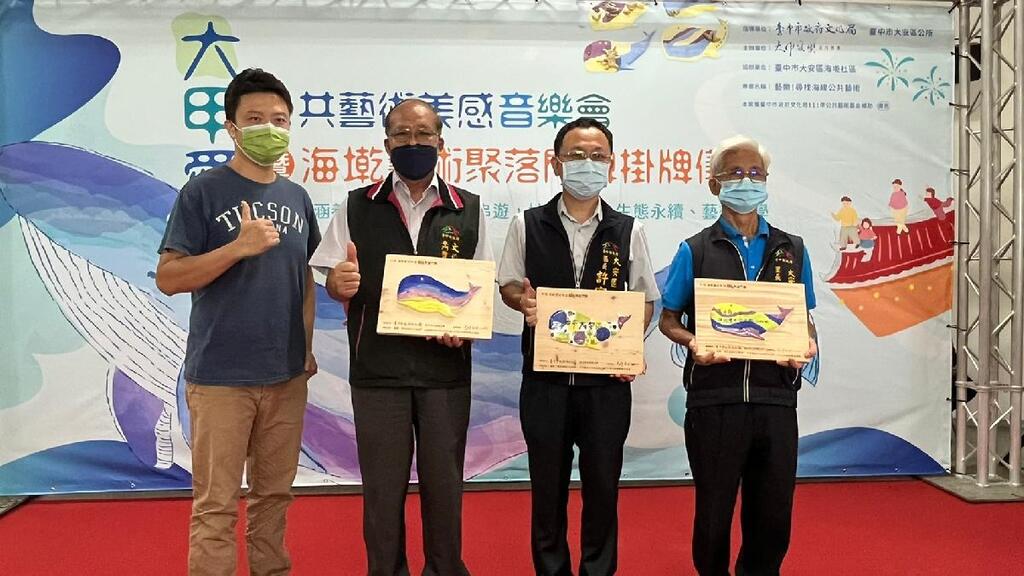 公共藝術跨界結合生態永續!「海墘藝術聚落門牌掛牌儀式暨音樂會」昨(3)日在台中市大安區聯合里民活動中心熱鬧登場,此場由台中市政府文化局補助大甲愛樂室內樂團辦理「藝樂!尋找海線公共藝術計畫」的公共藝術推廣活動,吸引無數社區居民及愛好藝術民眾熱情參與,現場還可自己手繪獨一無二的鯨魚造型門牌,同時聆聽悠揚的樂風,民眾更可感受公共藝術與音樂間的跨界對話。