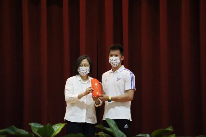 蔡英文總統今(21)日前往國家運動訓練中心為我國參加2021成都世大運代表團授旗,並致贈20萬元加菜金,勉勵選手突破自我,創造佳績,並宣示政府以選手的需求為導向,逐步提升國訓中心環境,並推動設置國家運動科學中心,讓選手全力拚搏,沒有後顧之憂。