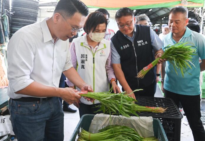 今日包括市府農業局長陳冠義、桃園區長許敏松、桃園果菜公司董事長呂淑真、農產品運銷發展協會理事長劉金福、桃園市蔬菜商業同業公會理事長何建中等均一同視察。