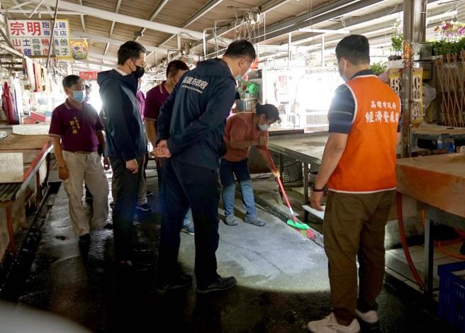 高雄市昨(6)日出現今年首例本土登革熱確診病例,為防堵疫情擴散,市長陳其邁昨第一時間即召集衛生、環保、經發、民政等相關單位會商並前往瑞興市場視察防治工作。今(7)下午副市長羅達生率隊到鳳山區共同及苓雅區國民等市場查看市場防疫作為,他特別提醒市場自治組織及攤商要加強清除易孳生病媒蚊的積水帆布、排水溝、屋簷排水槽等處,共同防堵登革熱疫情。