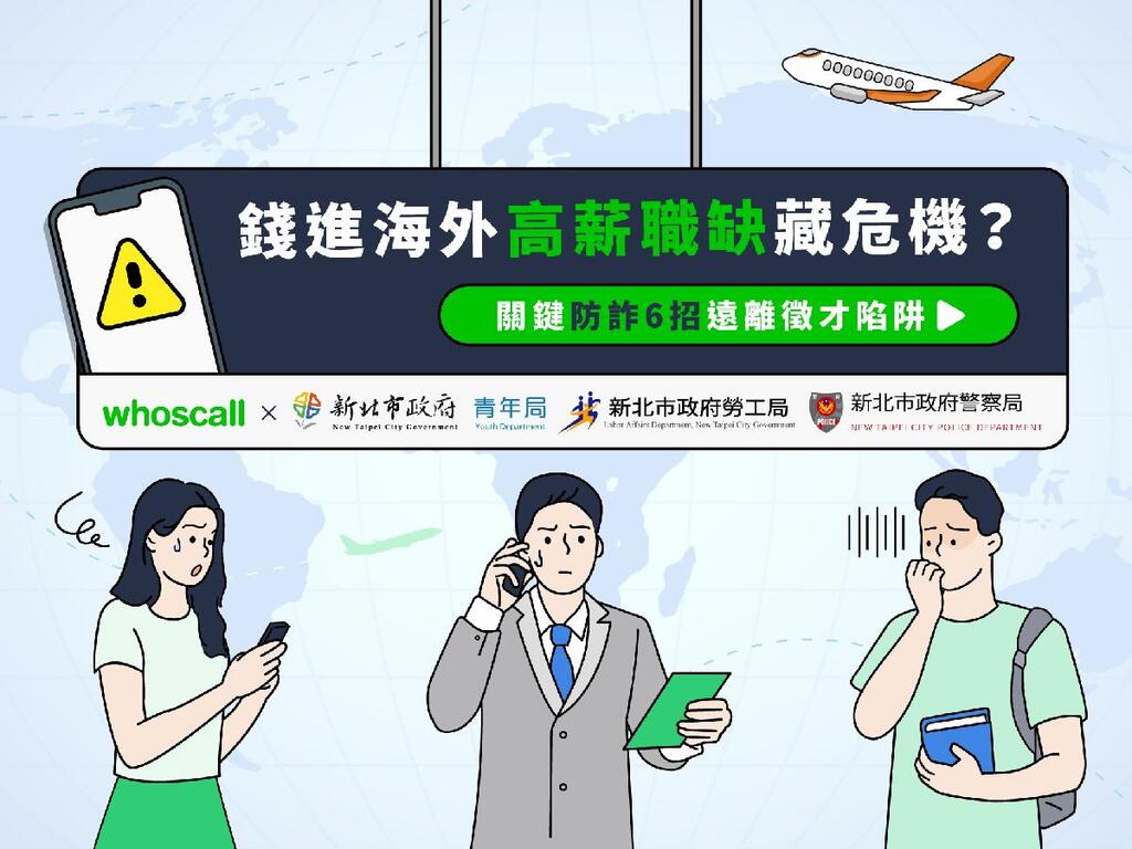 新北市政府青年局長錢念群表示,當前海外求職詐騙手段猖獗,因此新北青年局「有課UKO」開設了相關課程,要成為青年真正「有靠」的求職靠山,另外青年局、勞工局、警察局也與Gogolook(走著瞧股份有限公司)旗下陌生來電辨識軟體Whoscall聯手合作解密案例分析,希望民眾在求職的過程中需要更小心,不要輕易相信來不路不明的工作機會,以免落入危險處境!如遇「假徵才、真推銷」等不實徵才廣告疑慮,可透過新北市政府勞工局 02-2960-3456 分機6355~6356進行申訴,其他求職詐騙可撥打新北市警察局110、刑事警察大隊 02-8024-3033 或 165反詐騙專線尋求協助。